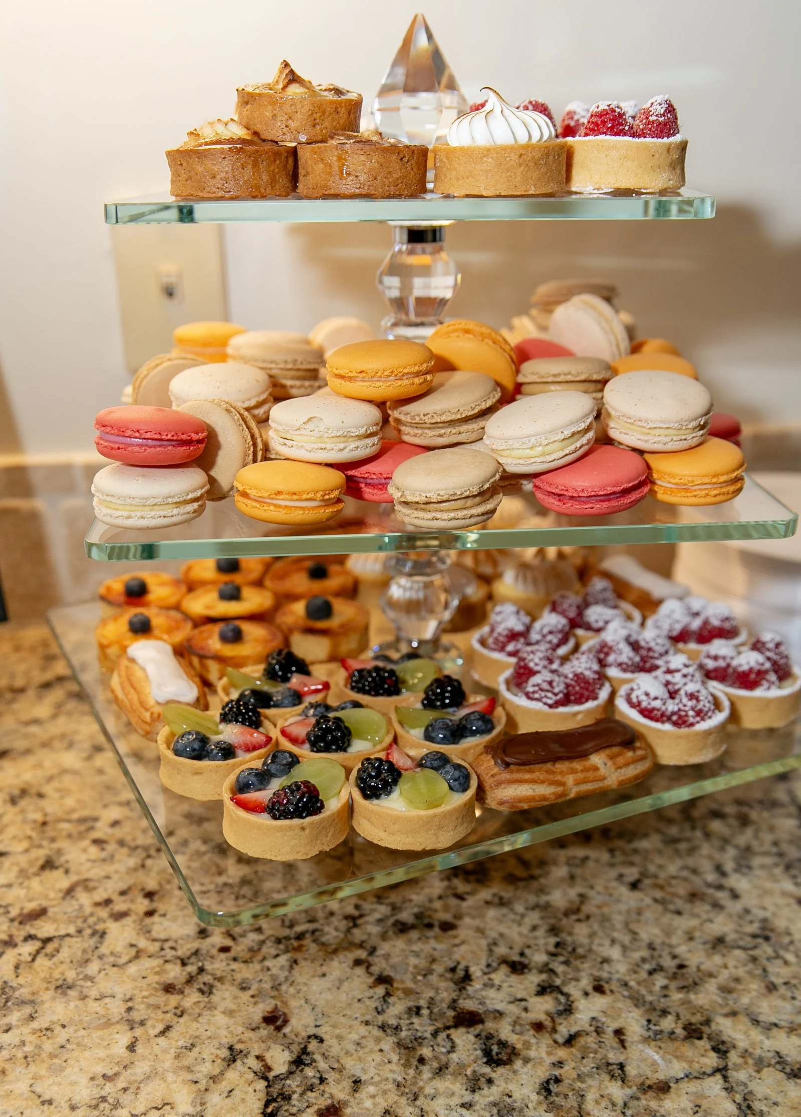 Of course, no trip to Paris would be complete without indulging in all the amazing food it has to offer. On the main floor, waiters circulated, offering guests champagne and Kir Royale throughout the night. A crepe stand stole the spotlight, offering guests a taste of authentic street French cuisine. Paired with treats from an authentic French bakery and dishes from our favorite caterer, including French sandwiches, ratatouille, and a carefully curated cheese and butter board, guests were able to savor the flavors of France with each bite.