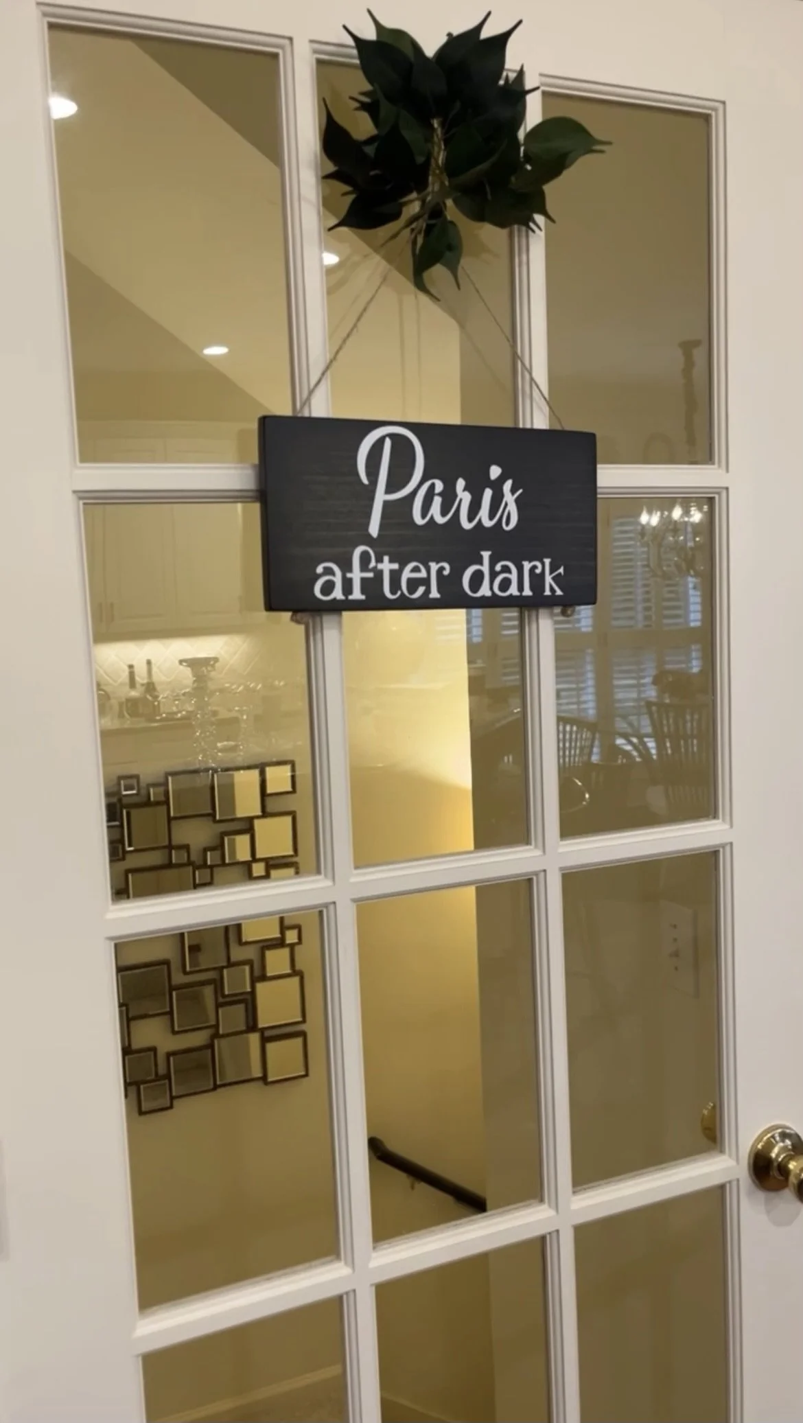 Our client wanted to utilize both floors of her home to immerse her guests fully in the Parisian experience. The main floor and the basement had very different vibes and we were concerned that opening both floors to guests upon their initial arrival might cause them to spread out too much, potentially leaving some guests feeling excluded. To address this, we opted to keep the basement closed until later in the evening, teasing its allure with a sign that read "Paris After Dark."
