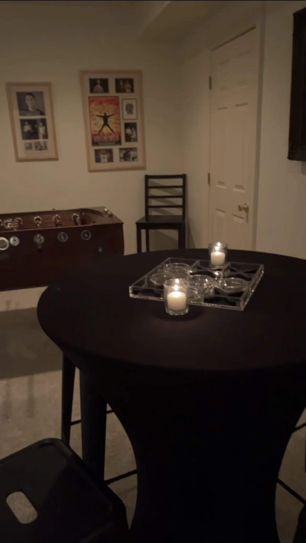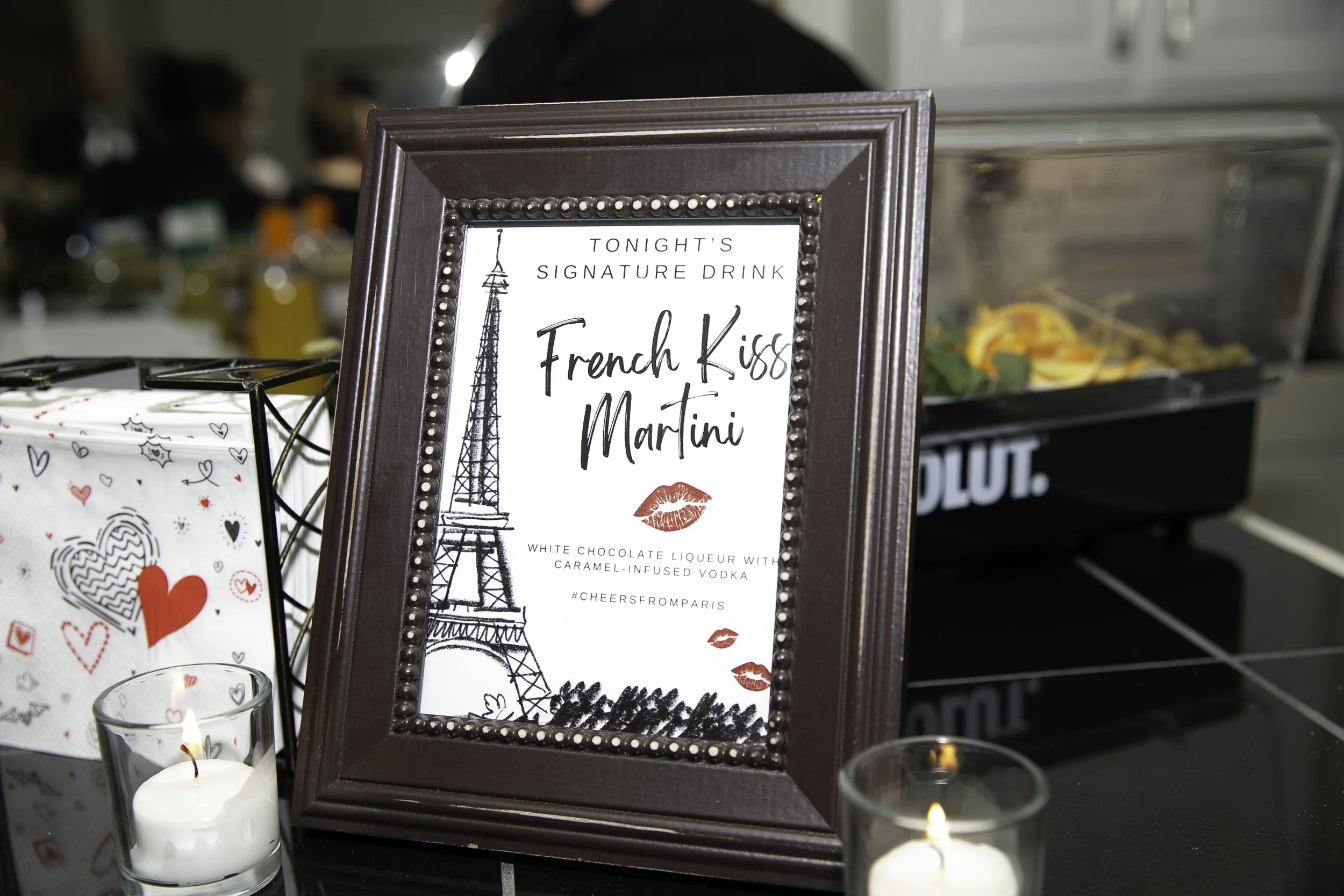 A few hours into the party, after the welcome toast and the conclusion of the "Pardon My French" trivia game, we invited everyone to join us in what we dubbed the most exclusive underground bar in Paris. As guests made their way downstairs, they were greeted by the sultry sounds of Parisian club music and the inviting glow of candlelight. The basement had been transformed into an underground bar, complete with high-top tables, a full bar manned by two bartenders mixing the signature drink called "French Kiss," along with other cocktails, and even classic games like pool and foosball—making it the ultimate after-hours hotspot in Paris.